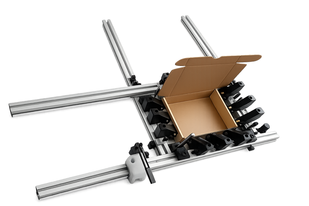 Kutu katlama aparatı ile karton kutularınızı hızlı, düzgün ve pratik şekilde katlayın. Paketleme sürecinizi hızlandırarak zamandan ve iş gücünden tasarruf edin.